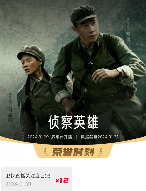 而在登陸北京衛視後,《偵察英雄》連續12天衛視第1的數據同樣很出彩。