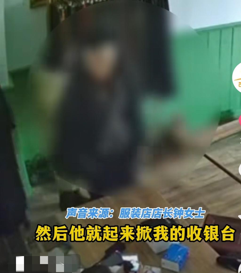 但過了一會,他又回來了,他對着服裝店的工作人員惡狠狠地說“關門”,還掀收銀臺。