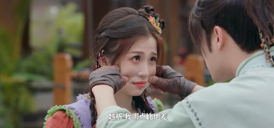 劇中虞書欣梳着小麻花辮子,再配上八字眉和花裏胡哨的服飾。