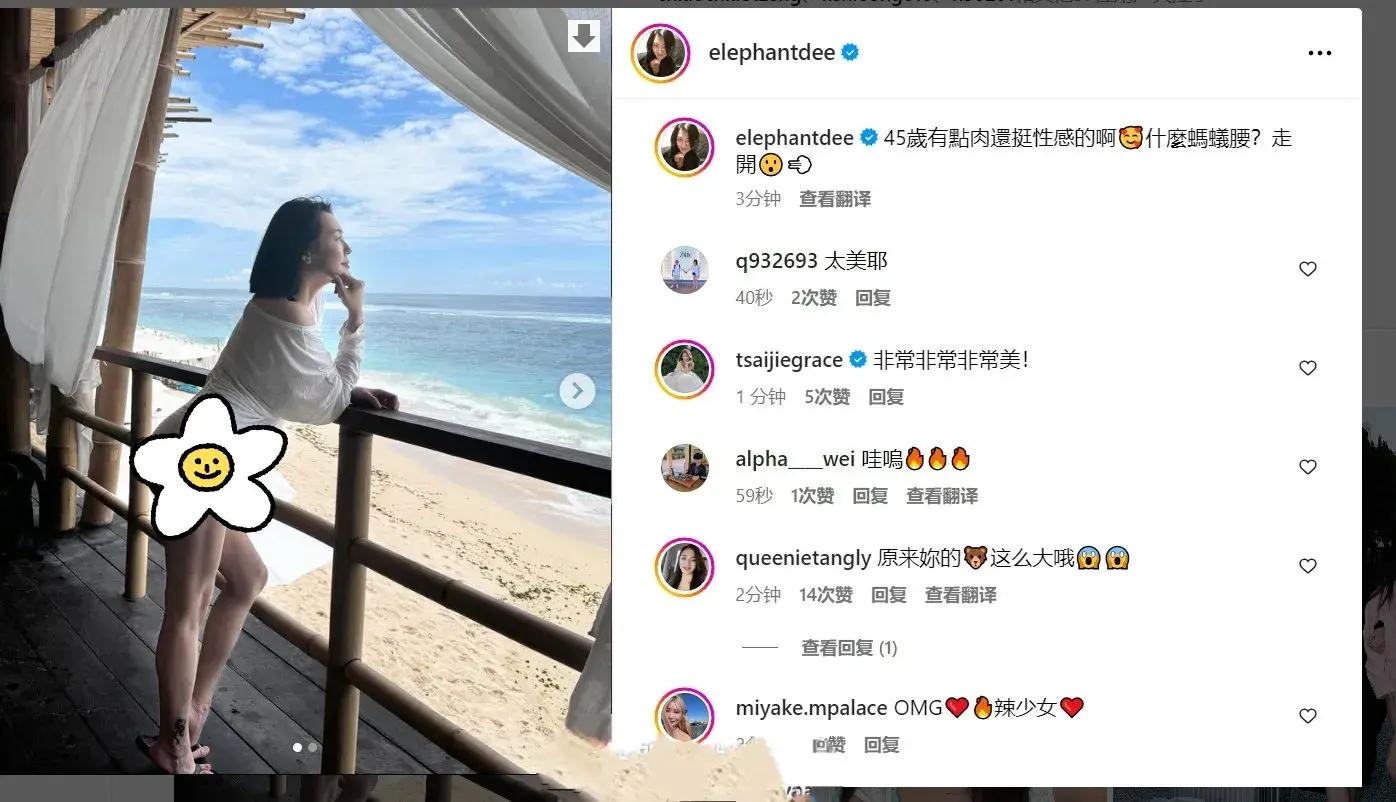 此外,小S還曬出一組泳裝照,趴在圍欄觀看美景,表情十分愜意。
