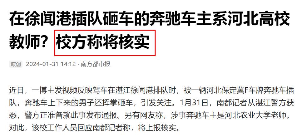 對於奔馳男是否是河北農業大學老師一事,河北農業大學表示將覈實。