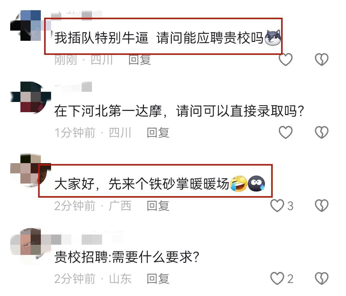 有網友說“我插隊特別牛逼,請問能應聘貴校嗎?”