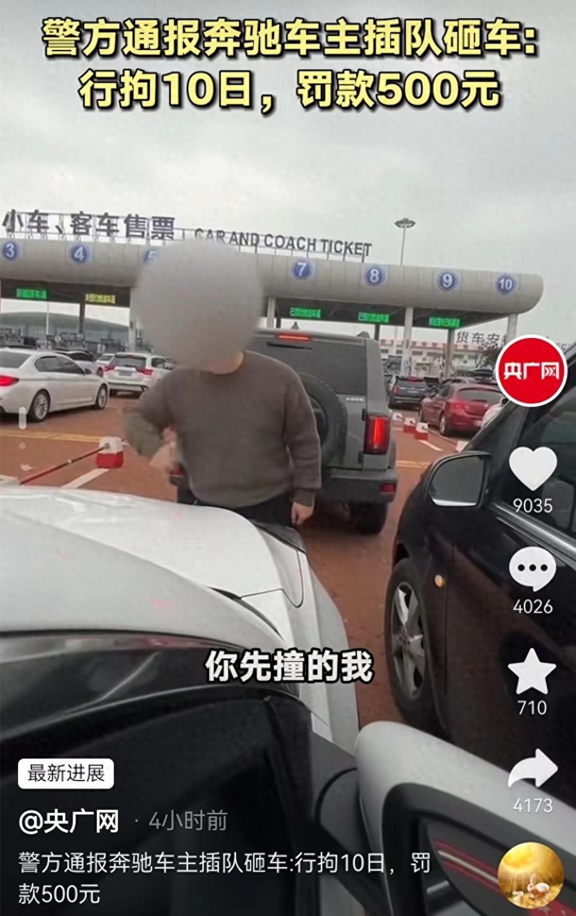 最終奔馳男爲他的瘋狂行爲付出了慘重的代價,他被行政拘留10日,罰款500元。