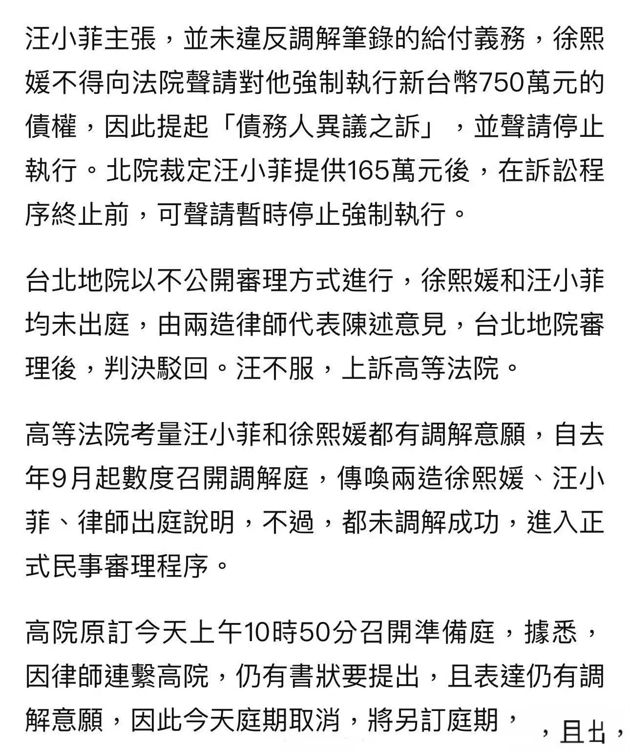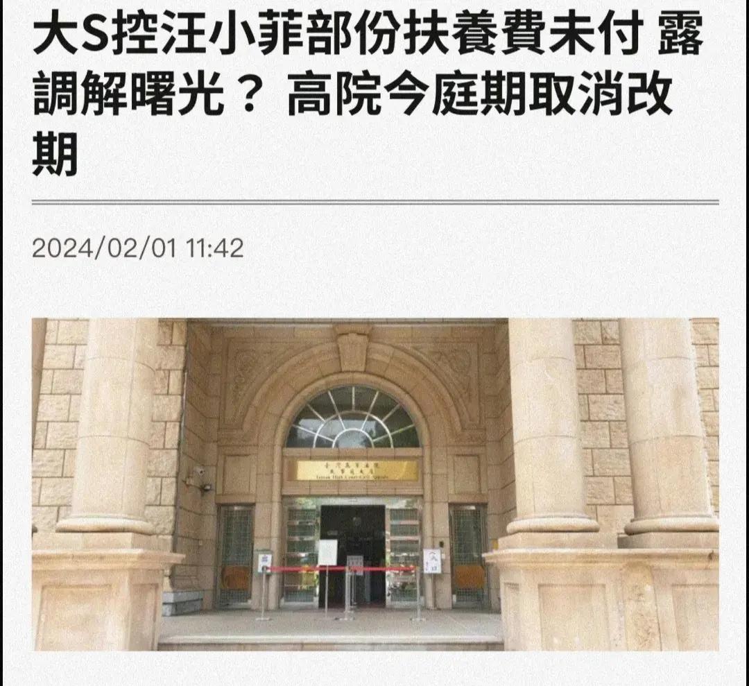 2月1日,據臺媒報道,大S和汪小菲離婚案有了新進展,由於雙方有調解意願,因此,法院決定延期開庭,不過,法院曾召喚兩人出庭,都未調解成功。