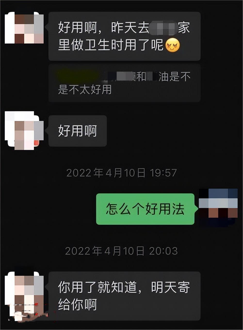其中2022年的一張聊天截圖中,李某萍說RHY和J油很好用,她推薦年輕男子用。