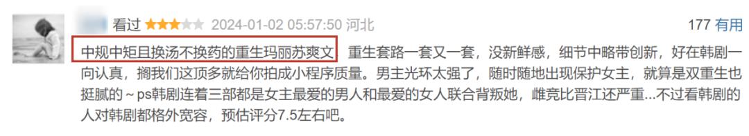 “中規中矩且換湯不換藥的重生瑪麗蘇爽文。”