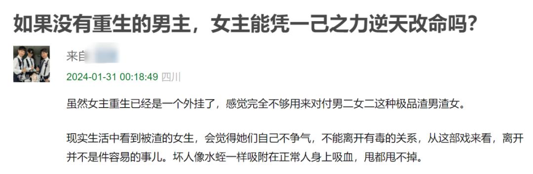 “要是沒有男主,女主的重生復仇之旅第一集就over了。”