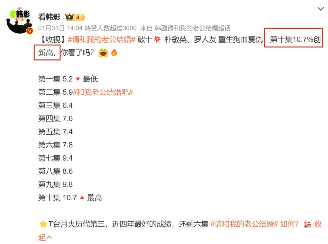 接着一路走高,劇集還未完結就以10.7%的收視率拿到了tvN月火劇近四年最好的成績。