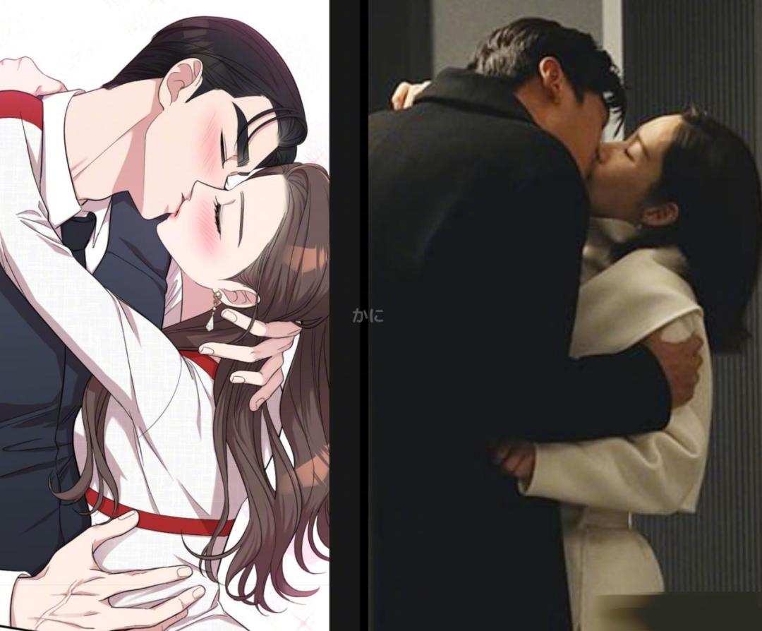 漫畫裏這個初吻的還原度堪稱100%,不管是體型差還是角度都一模一樣。