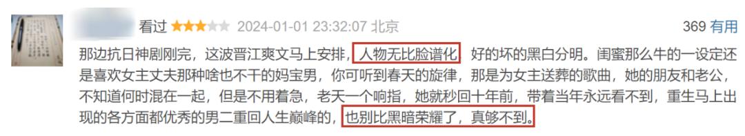 此外,人物塑造過於臉譜化、扁平化,也是該劇口碑不高的原因之一。