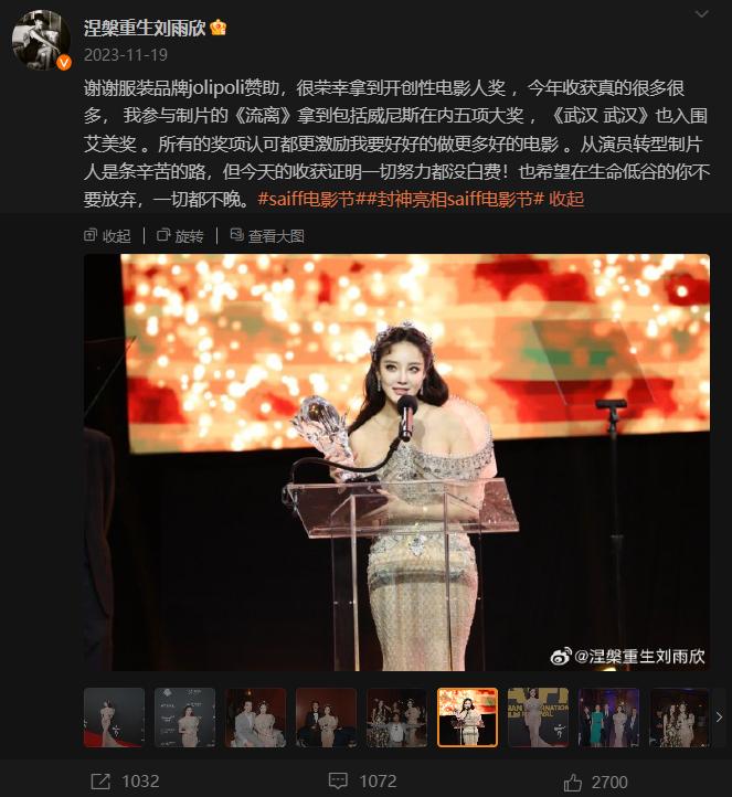 我相信,未來劉雨欣同樣也可以走到這一步,因爲她們的目標是一致的,都在致力於女性電影的發展。