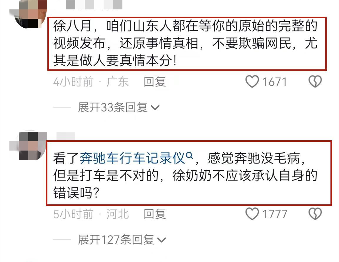 網友紛紛喊話徐奶奶公佈沒有經過剪輯的完整版的奇瑞車的行車記錄儀視頻,讓她還原事實,還大衆一個真相。