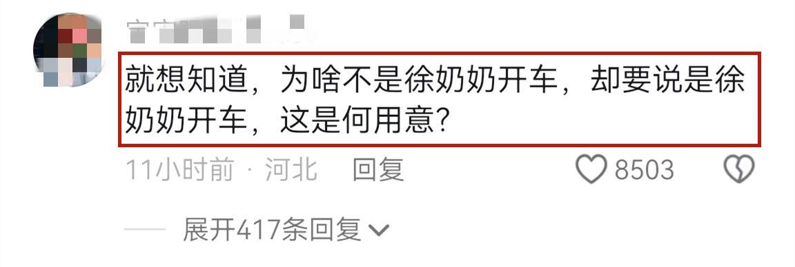 隨着這個猛料的曝出,很多網友懷疑徐奶奶一家故意說是徐奶奶開車,從而博取網友同情,畢竟對於欺負老人的人,大家都會唾罵。