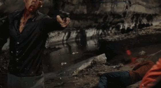 近期新片《爆裂點》裏,男主陳偉霆山洞中的浴血槍戰,也同樣有着極強暴力美學觀感。