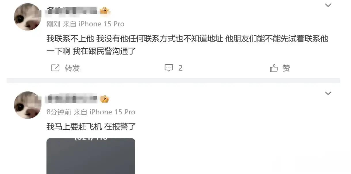 消息一出,不僅網友們非常擔心,就連曾爆料的女網友也慌了神,在社交平臺發文,稱沒有楊波任何聯繫方式,正在與民警溝通,已經報警。