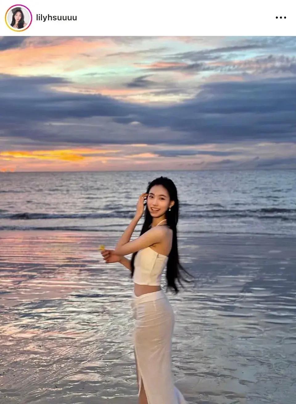 照片中,小S二女兒變換各種造型,一會穿吊帶背心搭配短褲,一會又裹着白裙,應該是穿着泳裝的緣故吧,不得不說,確實很漂亮,身材高挑,大長腿搶鏡。