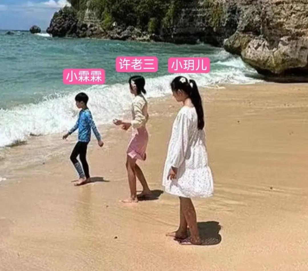 細心的網友發現許老三曬出的照片中,竟然看到大S兒女的身影,畫面中,汪希玥、兒子汪希箖以及許老三在沙灘上玩耍,特別溫馨。