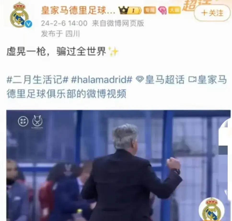 比如皇家馬德里足球俱樂部發文:虛晃一槍,騙過全世界。