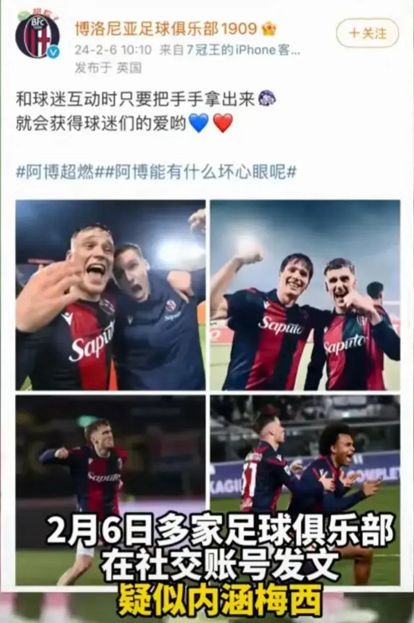 比如博洛尼亞足球俱樂部發文:和球迷互動時只要把手手拿出來就會獲得球迷們的愛呦。