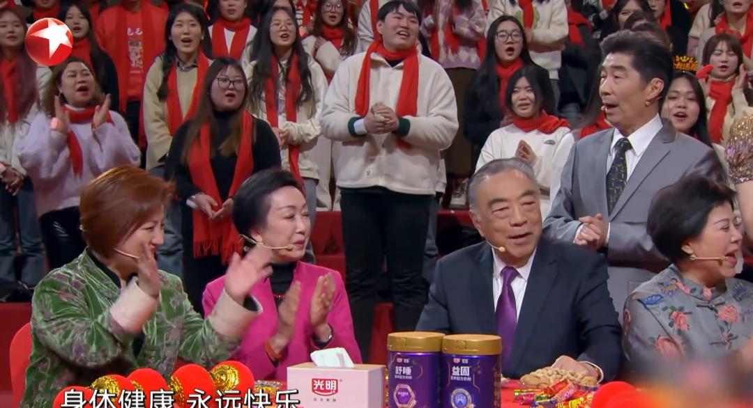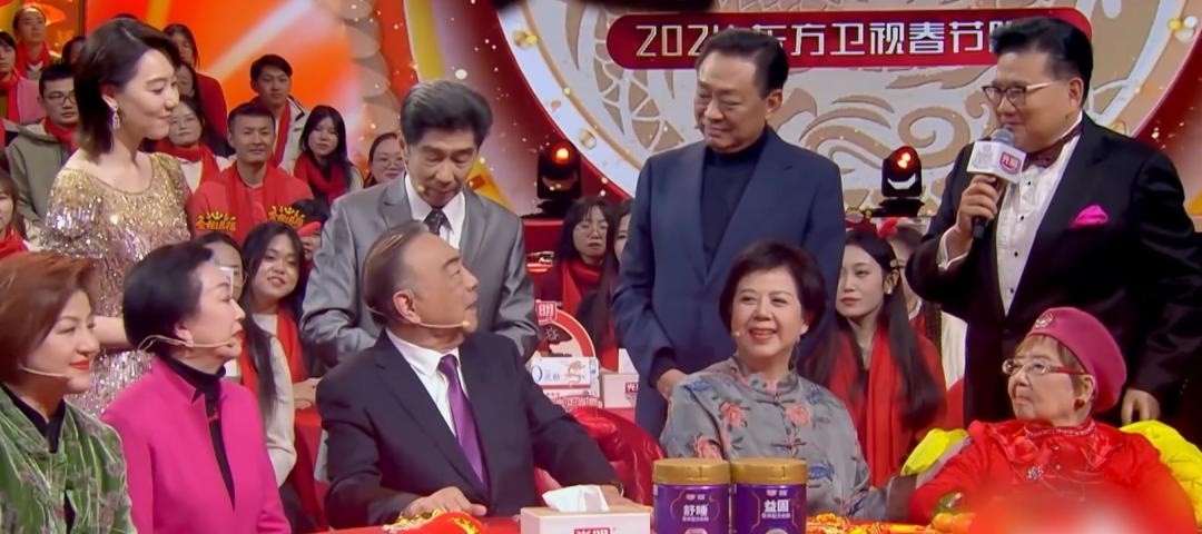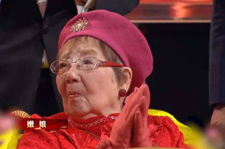 晚會現場,這位海派文化老一輩代表也對着鏡頭送出新春祝願,而她也得到了現場觀衆的起立致敬。