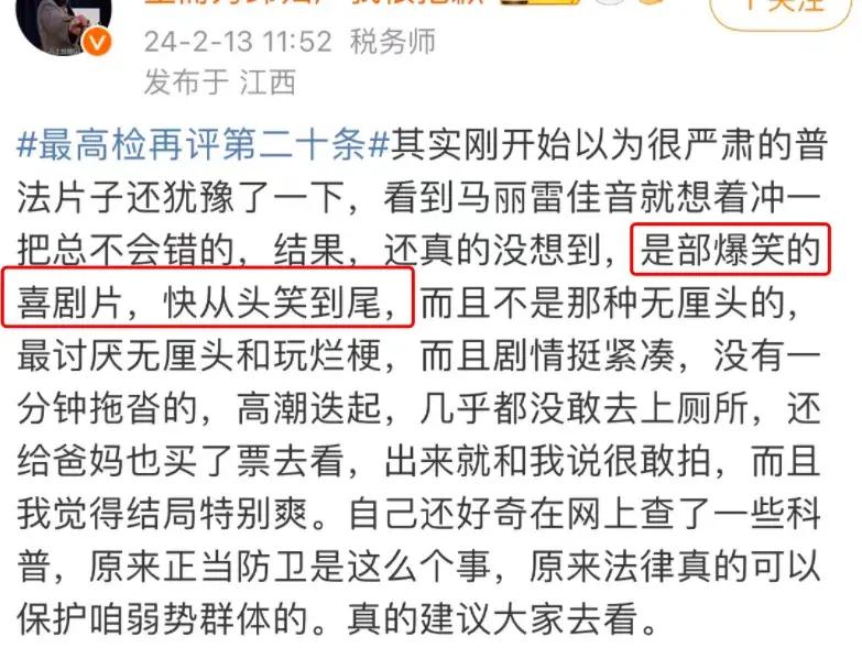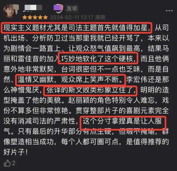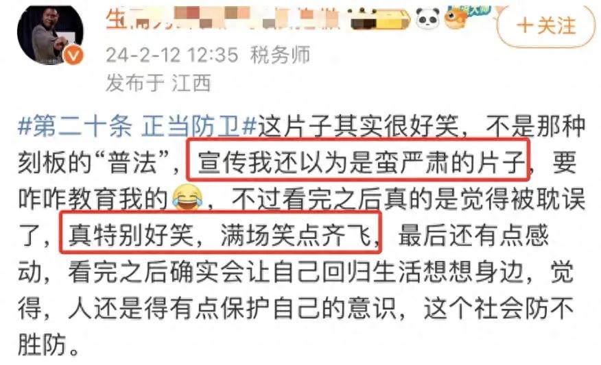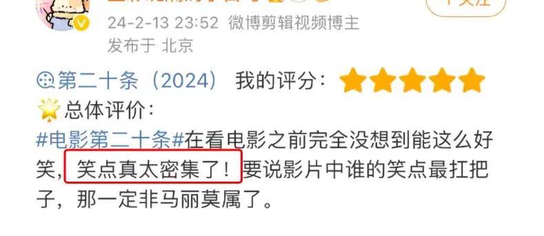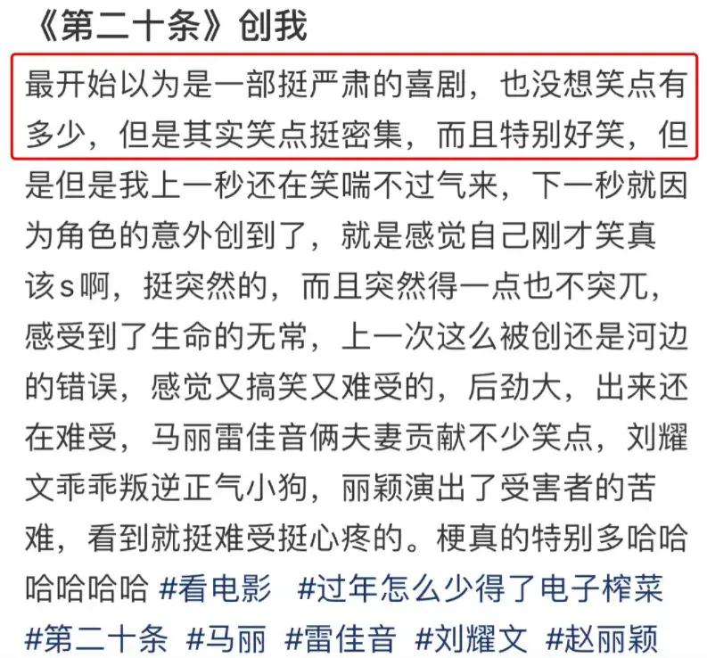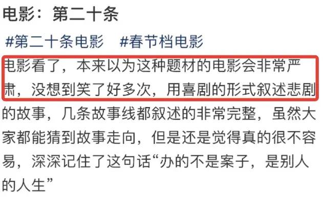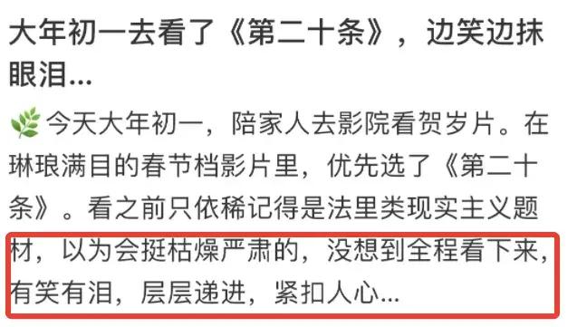 看完電影打開手機一刷,發現跟我有同感的人還真不少,都是看完《第二十條》被“打臉”的,都是原來擔心會枯燥,看的過程給笑不行了,主打一個反差!