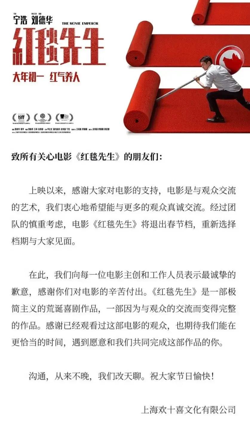 目前,電影《紅毯先生》已經宣佈延期上映,退出春節檔,重新選擇檔期與觀衆見面,這……,着實讓人沒想到。