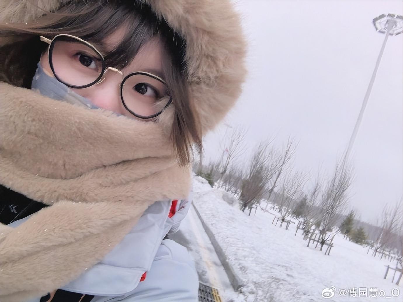 近日,傅園慧和家人到吉林旅遊,2月17日,她們包車前往長白山遊玩。