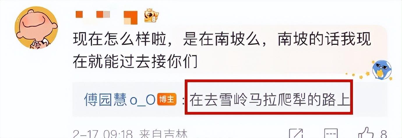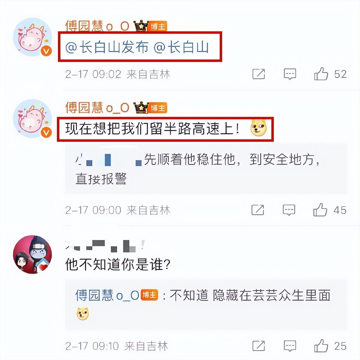 在該條動態的評論區,傅園慧艾特了長白山官方,還透露司機想將她們留在高速上。