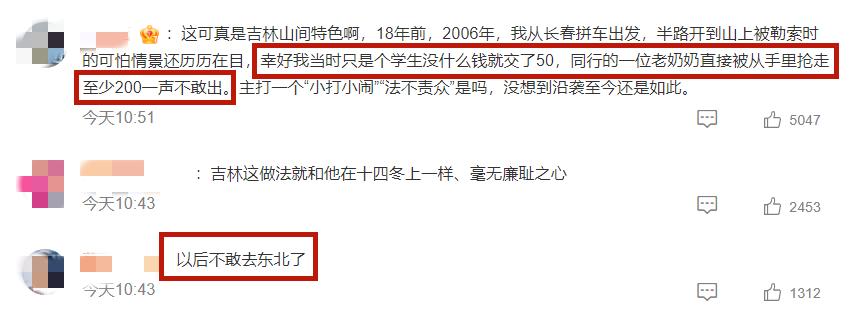 實際上的確如此,在評論區多位網友講述了他們在吉林被勒索的遭遇。