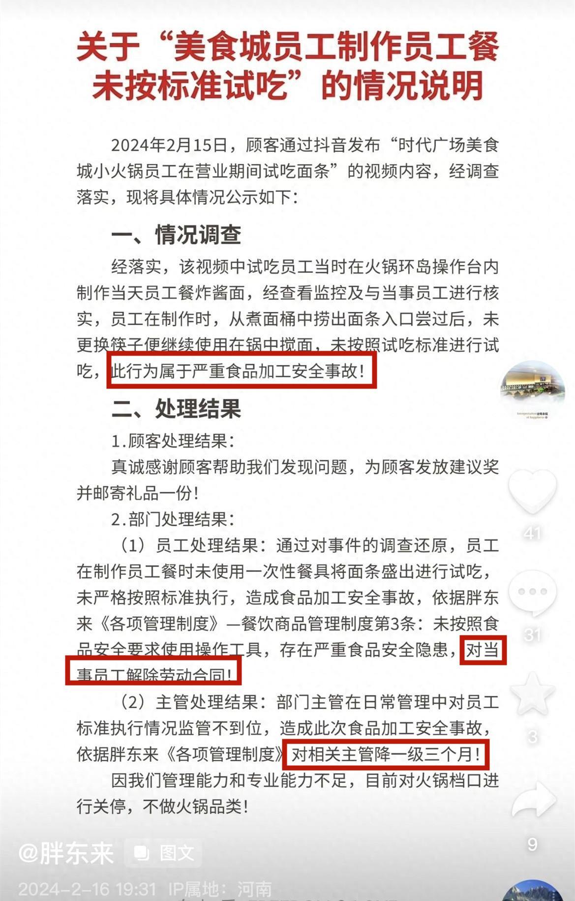 2月16日,胖東來發布了對此事的情況說明,公開了處理結果。