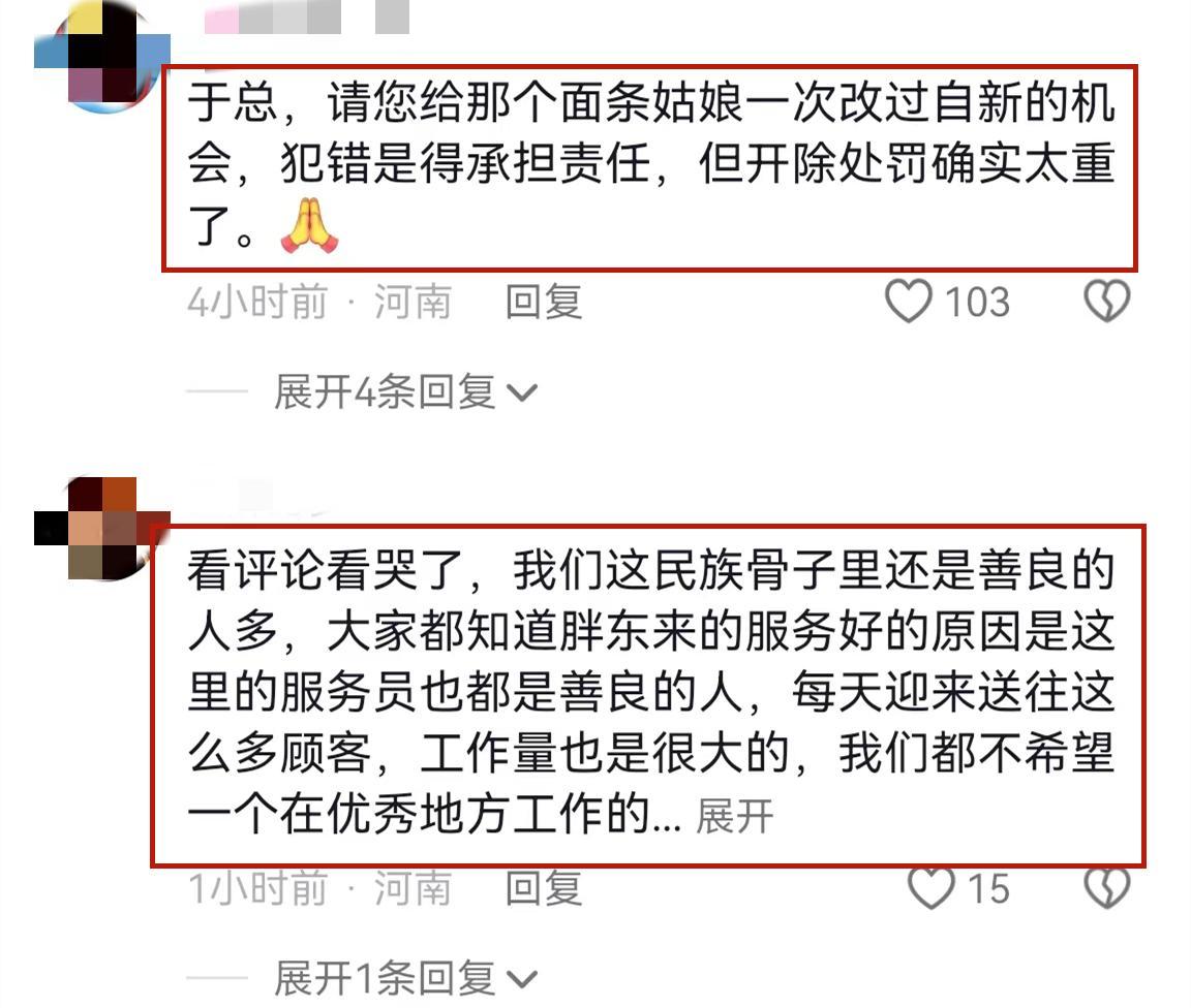 於是,網友們湧入於東來的賬號評論區,於東來的賬號評論區很快淪陷,網友希望他能對涉事女員工網開一面。