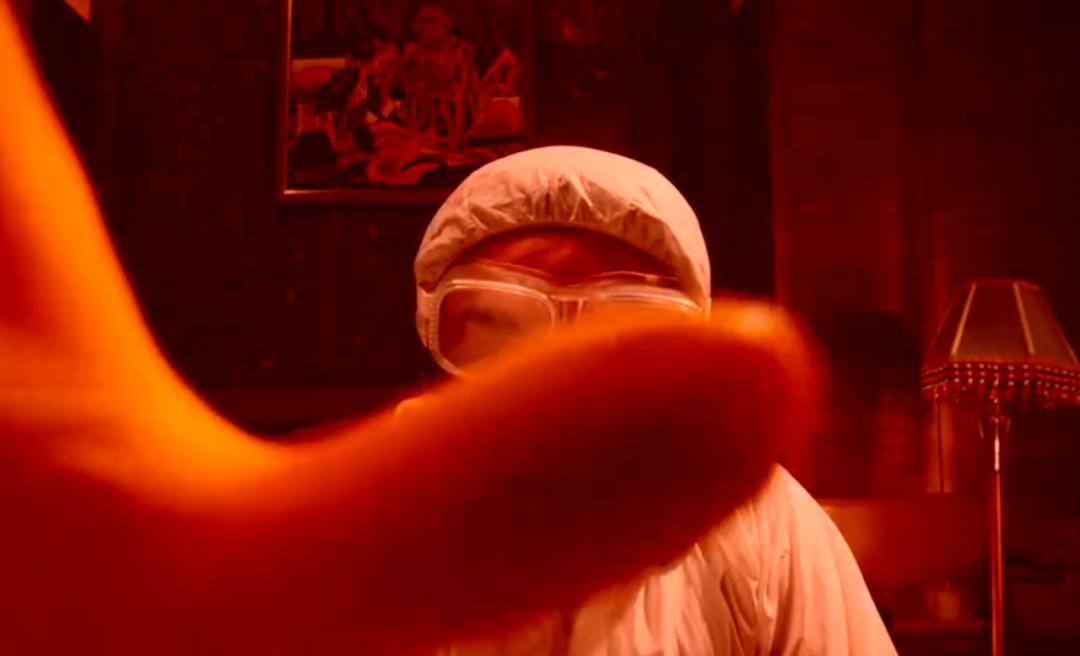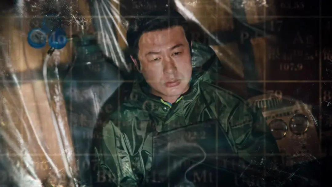 還有他穿着防護服在“實驗室”裏研究的畫面,後面的設備也和真實故事裏劉招華的製毒設備一樣。