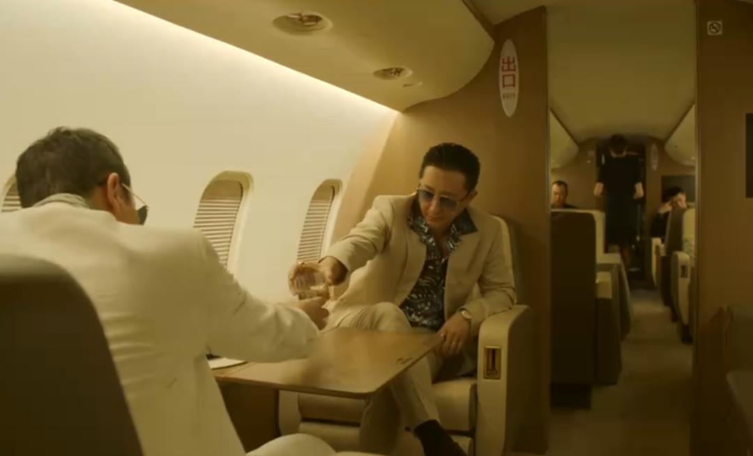 海報上,他坐在椅子上,悠閒地把玩手裏的東西,後面警察步步逼近,他卻絲毫不緊張,還帶着大毒梟的從容。