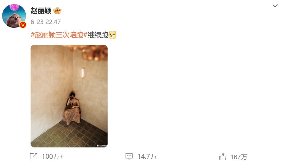 在去年白玉蘭頒獎禮結束後,面對再次陪跑,趙麗穎十分坦然的發文:繼續跑。