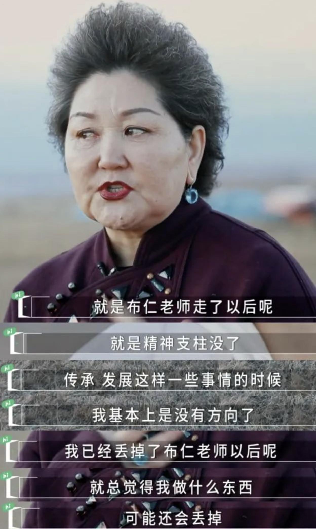 她哽咽地說:“就是精神支柱沒了,我原來是布仁覺得這個東西是可以做的,我們就開始做,我就有力量,我當時天不怕地不怕。但是現在呢,做什麼東西都有一點害怕。”