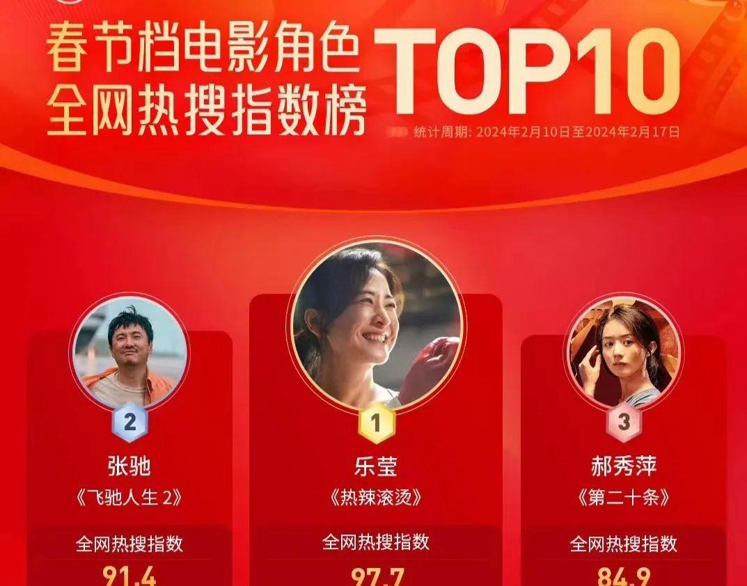 在發佈的春節檔電影角色全網熱搜指數榜單中,郝秀萍也位列第三,從這些就可以看出觀衆對趙麗穎表演的認可。