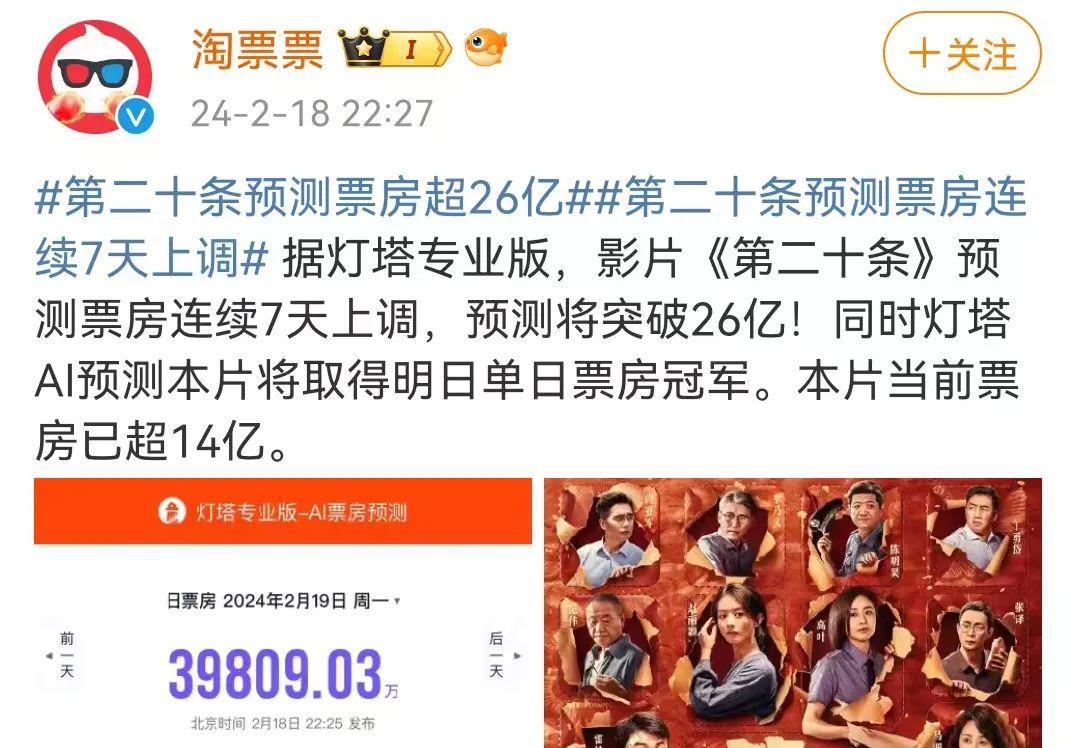 電影票房連續3日逆跌,預測票房也連續7天上調,預測票房將突破26億。