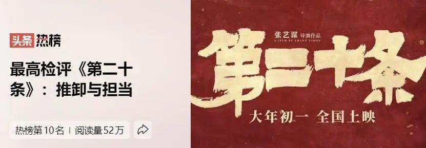 在官媒和觀衆的力薦下,《第二十條》也成爲春節檔的逆襲作品。