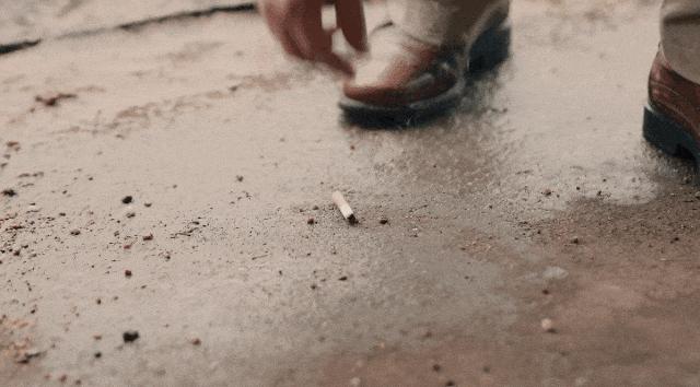 之後他彎腰撿起了地上客戶扔的菸頭,直接徒手給掐滅了。