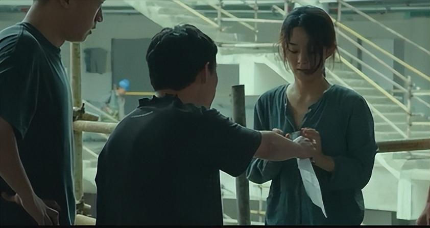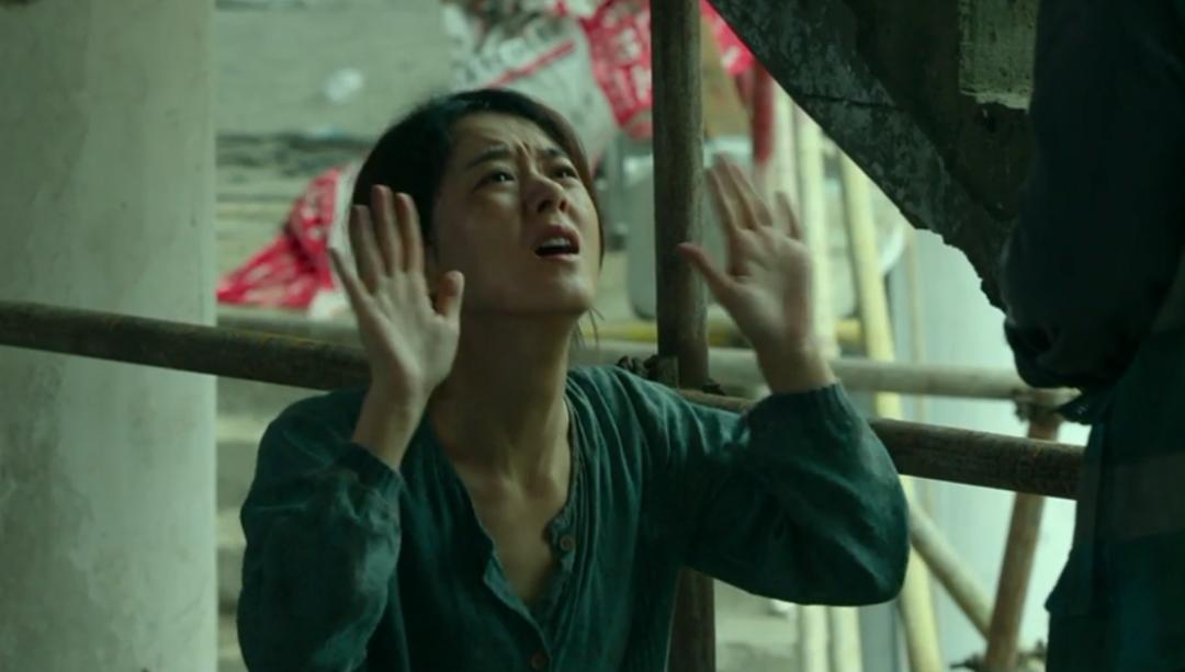 在那場天台戲的開端,她也是想要爲幫丈夫脫罪而跑到工地找證人的。