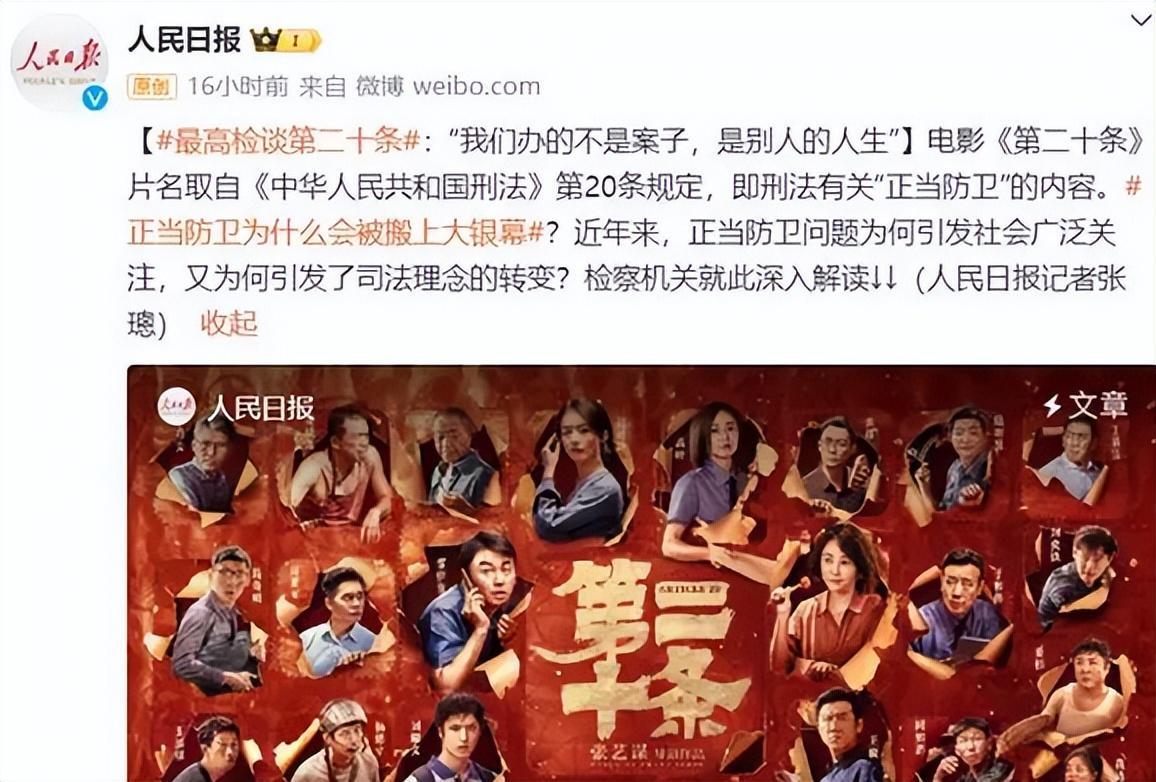 而人民日報等官媒同樣也多次發文,爲《第二十條》打Call。