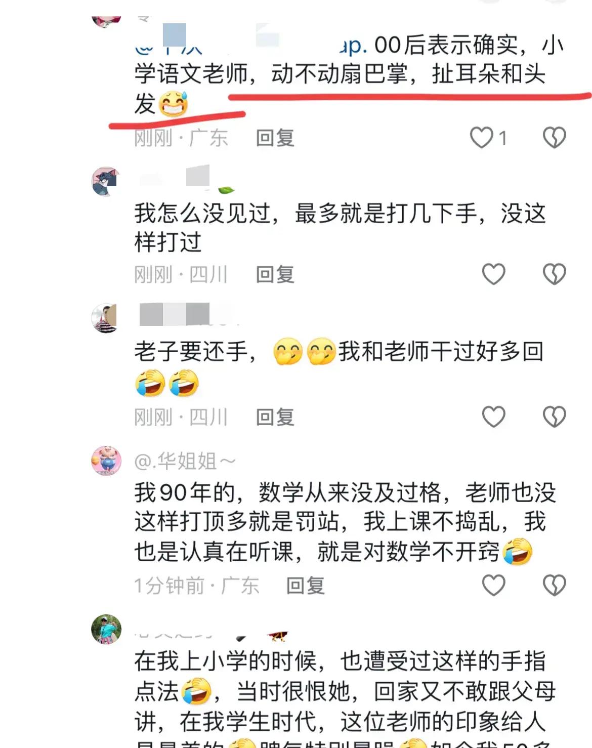 有網友說他小時候也被老師掐,還被老師在臉上吐了口水。