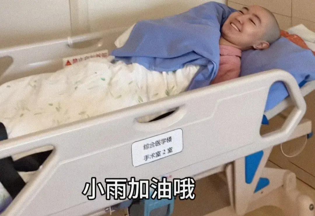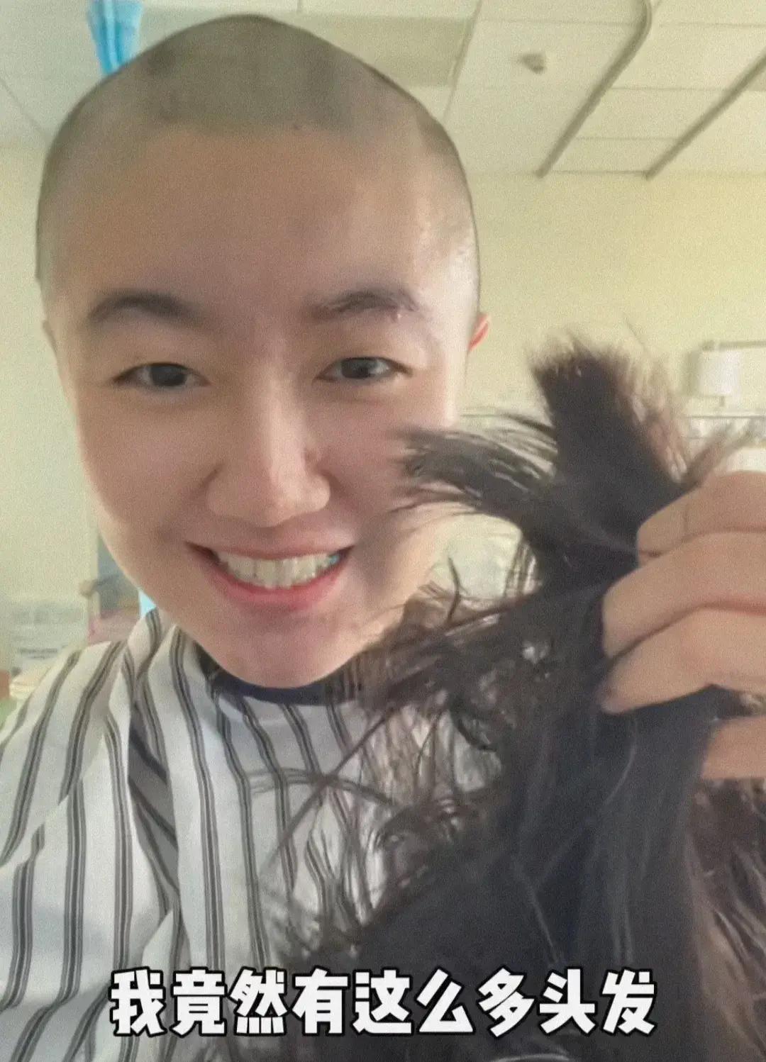 畫面中,平日裏活潑開朗的高君雨面容有些憔悴,看周圍的環境,像是在醫院裏,爲了方便手術,已經剃光了頭髮,儘管如此,依舊非常的樂觀,臉上帶着微笑,不得不說,此時此刻,還能保持良好的心態,讓人敬佩。