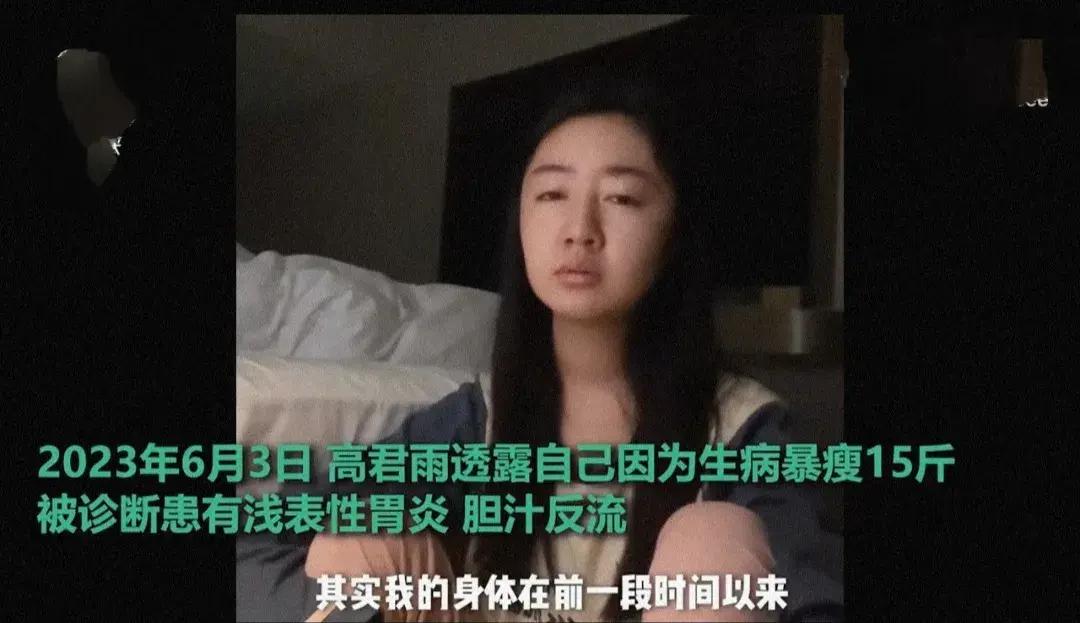 其實,早在2023年6月份,高君雨就曾曬視頻透露因爲生病瘦了15斤,身體狀況非常不好,喫飯都要一個小時左右,渾身沒有力氣。