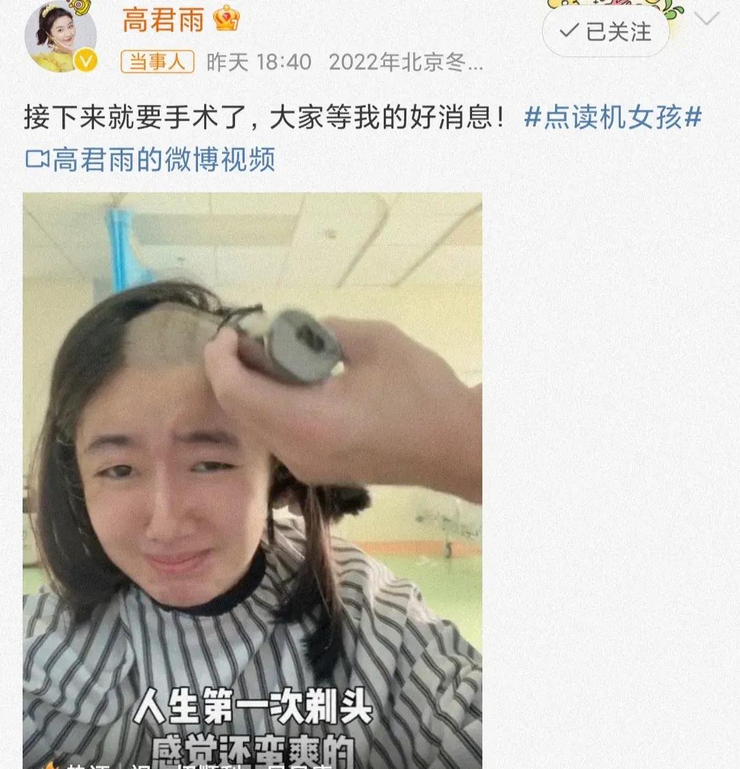 “點讀機女孩”高君雨自曝患腦瘤,已剃光頭髮進入手術室,加油!