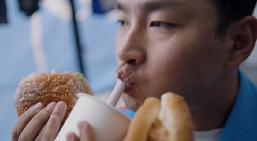可畫面一轉,張弛卻一邊喫着漢堡一邊躺在椅子上打遊戲。