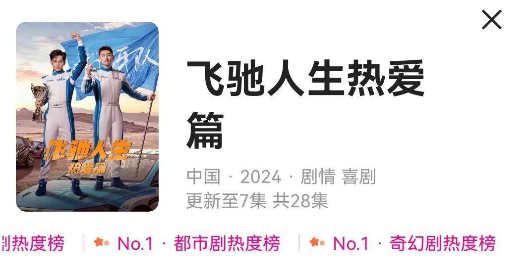 所以在《飛馳人生2》熱映時,飛馳系列的首部衍生網劇《飛馳人生熱愛篇》於近日播出。