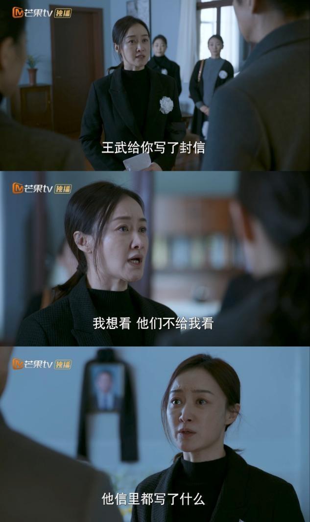 羅靜在葬禮上質問鄭寒江,想知道王武生前寫給他的信件內容,彷彿抓住救命稻草般看着鄭寒江,但鄭卻一言不發。