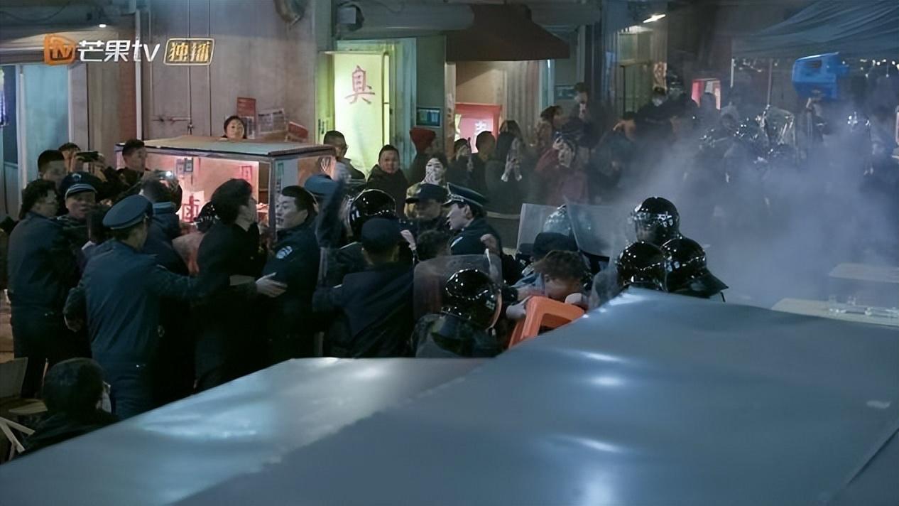 鄭寒江拿着大喇叭告訴攤販們“不搬走就採取強制措施”,面對他們的毫不聽從,警方帶領防爆中隊強制執行!