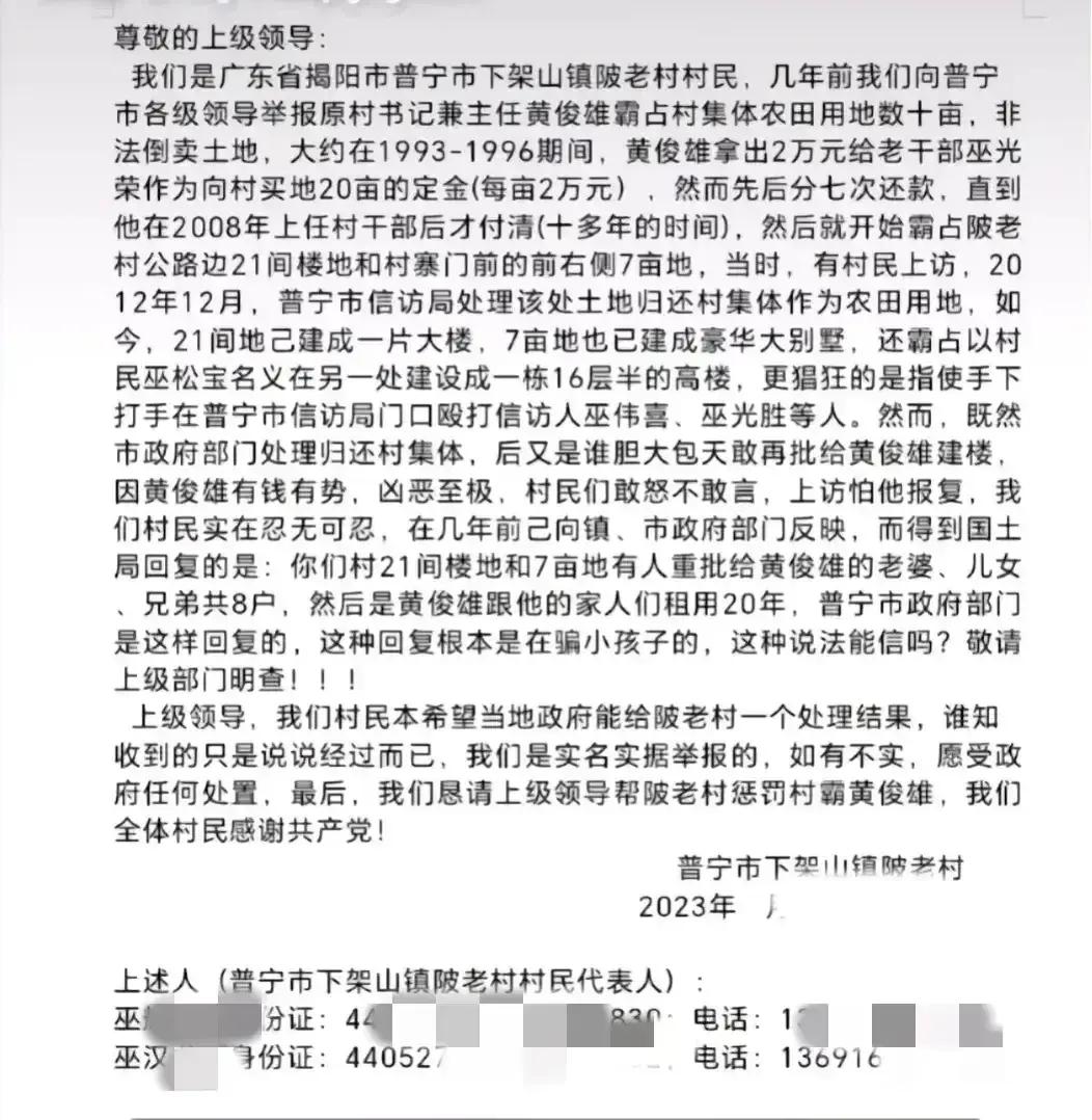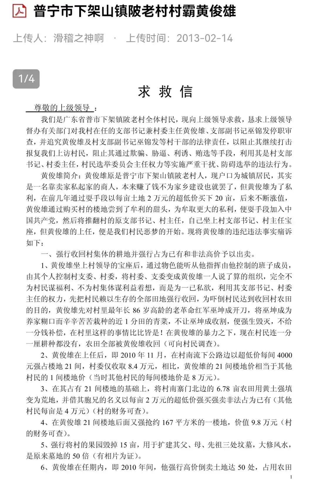 根據舉報信內容可知黃俊雄是陂老村人,在擔任陂老村村書記之前,是一名靠賣傢俬起家的商人。